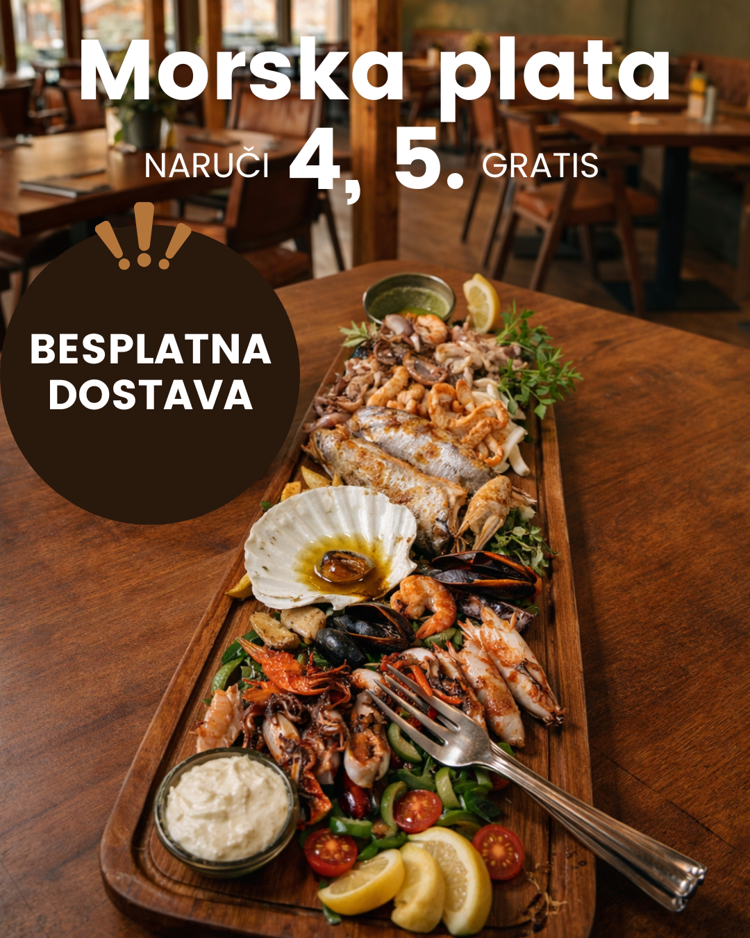 Za naručene 4 morske plate, petu šaljemo besplatno Dostupno u: Samo dostava